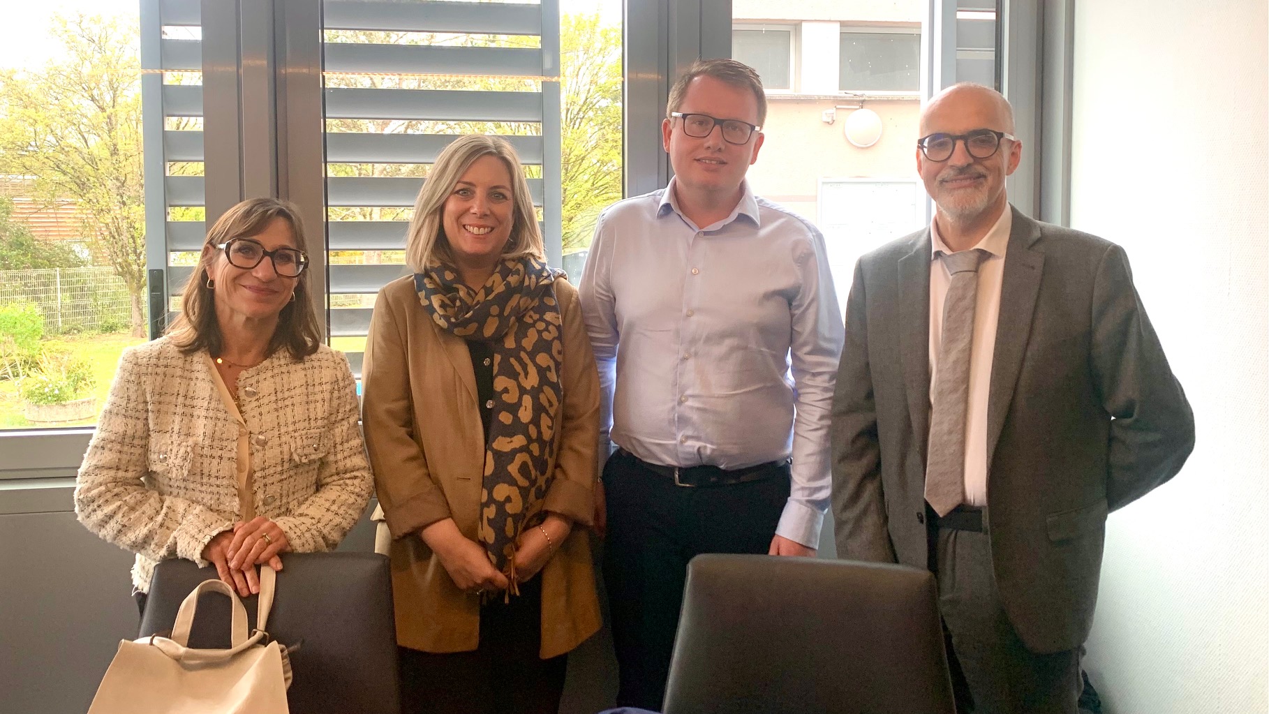 Mme La rectrice Bisagni en conversation avec Monsieur Falco Dasen du 47 en présence de la Direction du Lycée et des professeurs